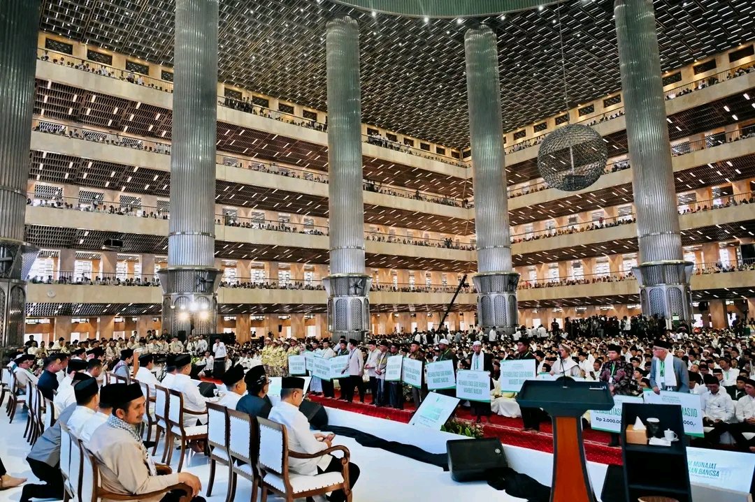 Jakarta — Presiden Republik Indonesia, Prabowo Subianto, menghadiri acara Bersatu dalam Munajat untuk Keselamatan Bangsa sekaligus Pengukuhan dan Ta’aruf Pengurus Majelis Ulama Indonesia (MUI) Masa Khidmat 2025–2030 yang digelar di Masjid Istiqlal, Jakarta, Sabtu (7/2/2026).